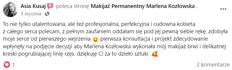 Kieruje się w mojej pracy zasadą, że makijaż permanentny to sztuka. Każda twarz jest inna i potrzebuje indywidualnego projektu, który uwydatni wszystko to, co w urodzie najpiękniejsze.
